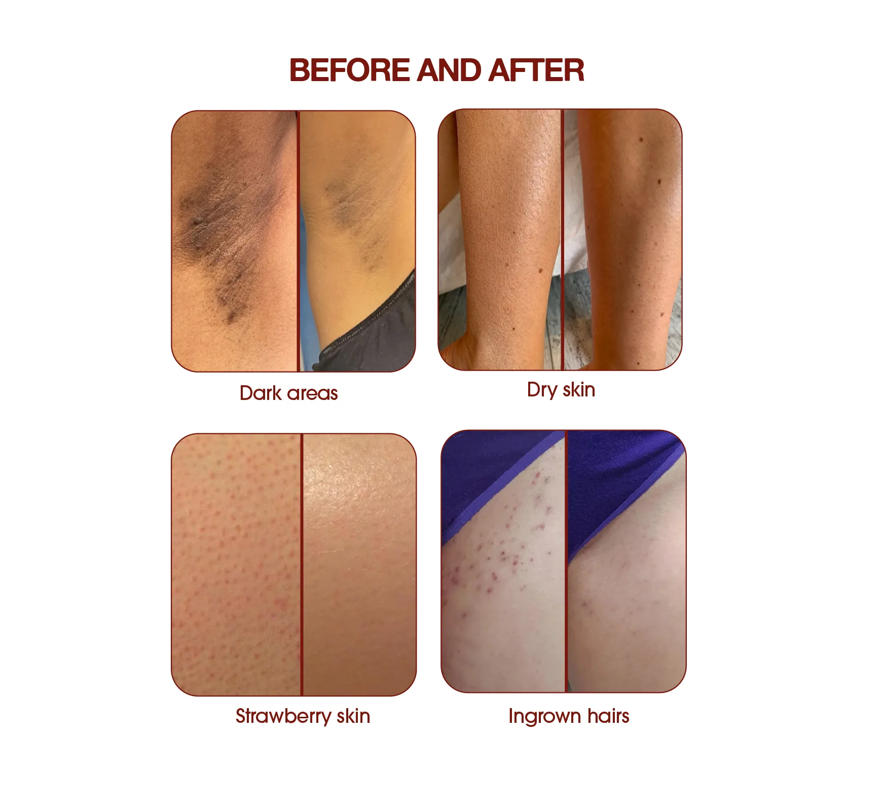 Helps smooth the look of strawberry skin, release ingrown hairs, soften dark spots, and leave your skin feeling soft and comfortable, even from the first use !